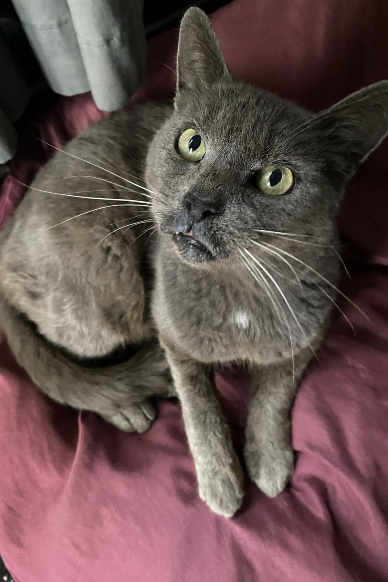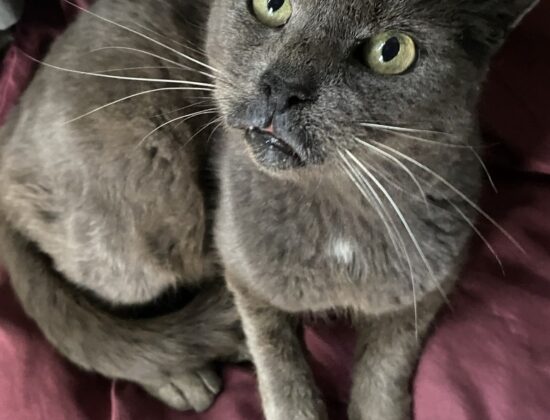 - Kartäuser-Mix (grau, kleiner weißer Brustfleck)