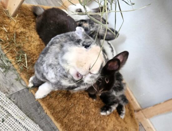 Heute bekommen wir nur das Beste, frische Grünfutter – und darüber sind wir richtig froh! 🥬 Wir haben viel Platz zum Hoppeln und immer ein sauberes gemütliches Zimmer.