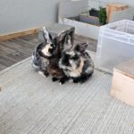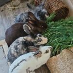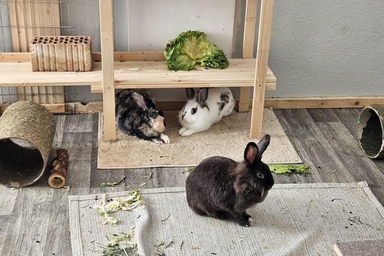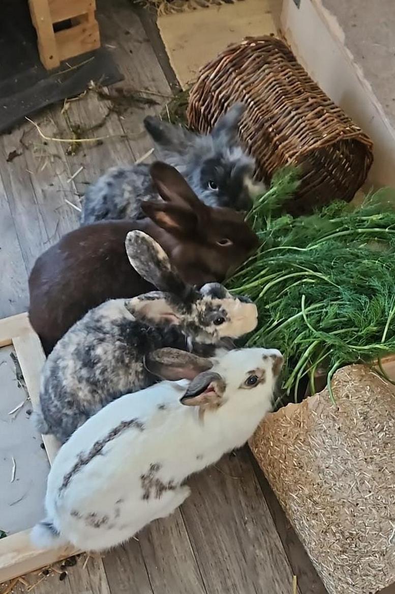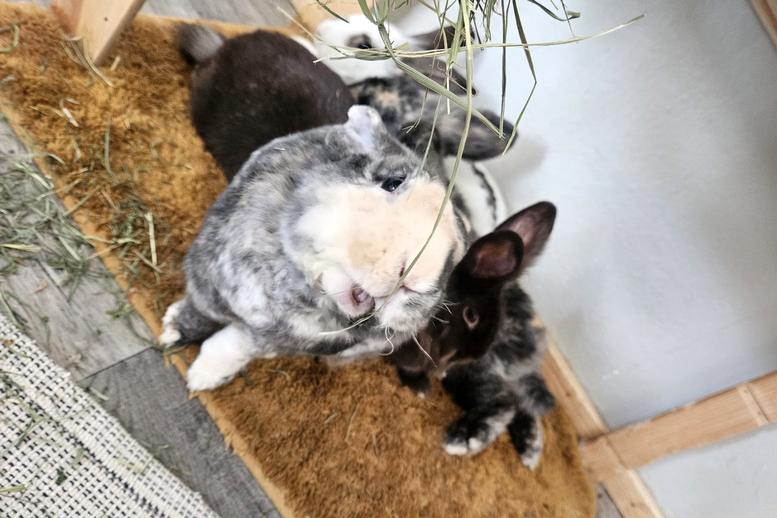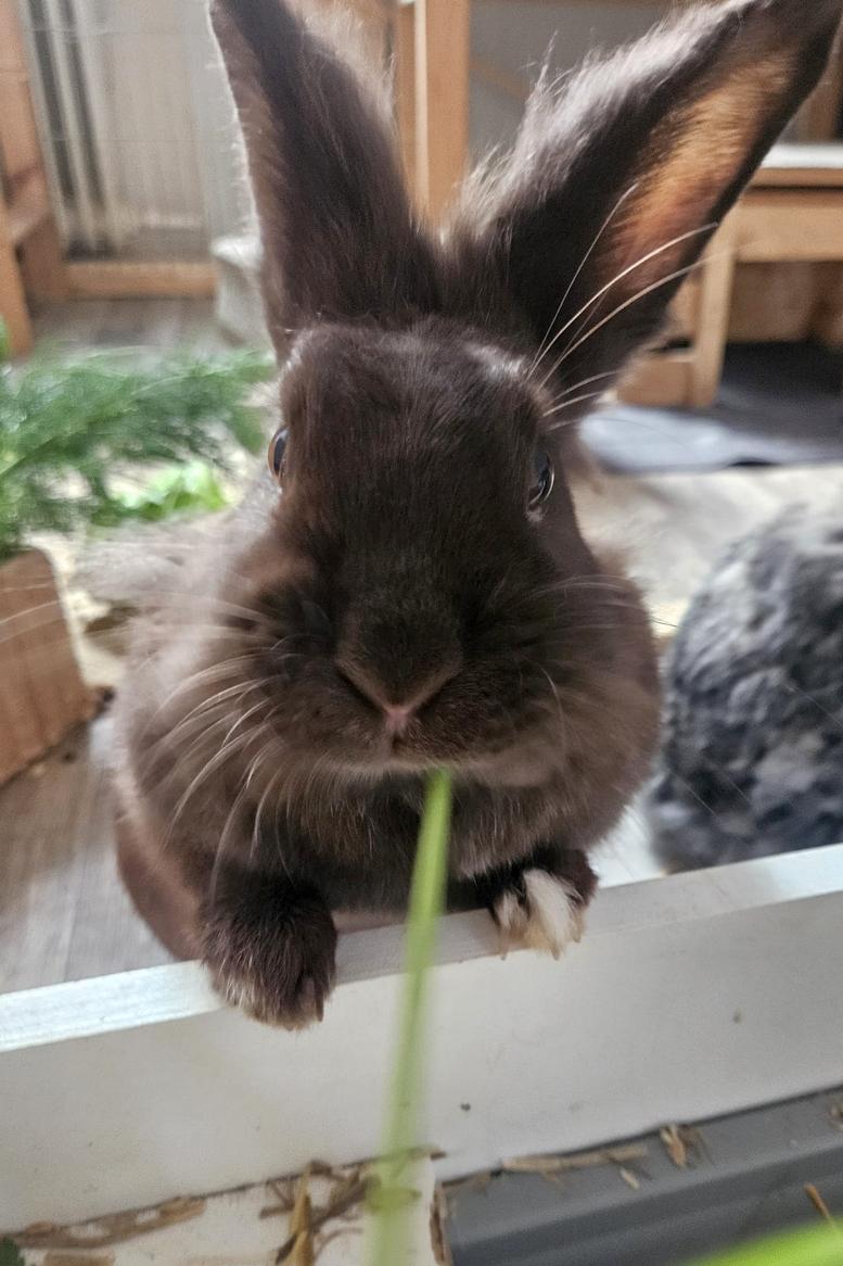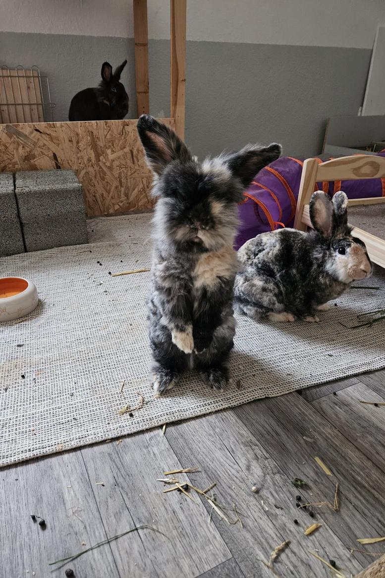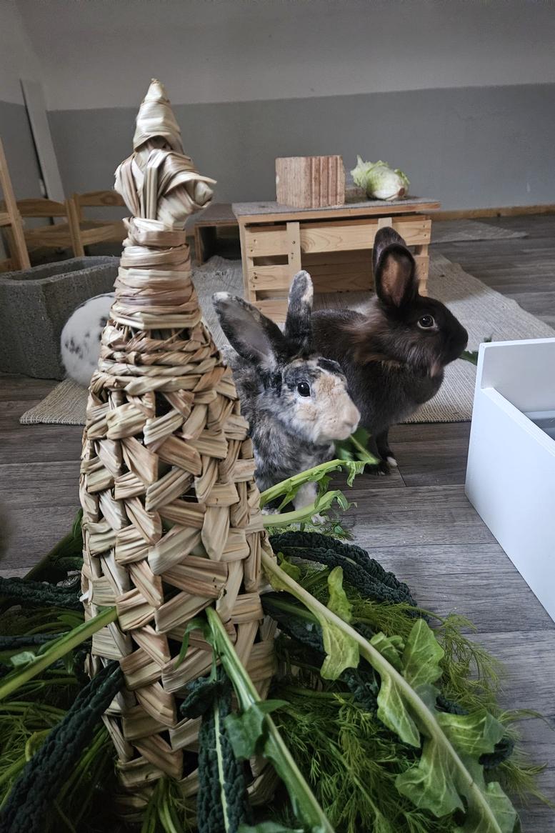 Heute bekommen wir nur das Beste, frische Grünfutter – und darüber sind wir richtig froh! 🥬 Wir haben viel Platz zum Hoppeln und immer ein sauberes gemütliches Zimmer.