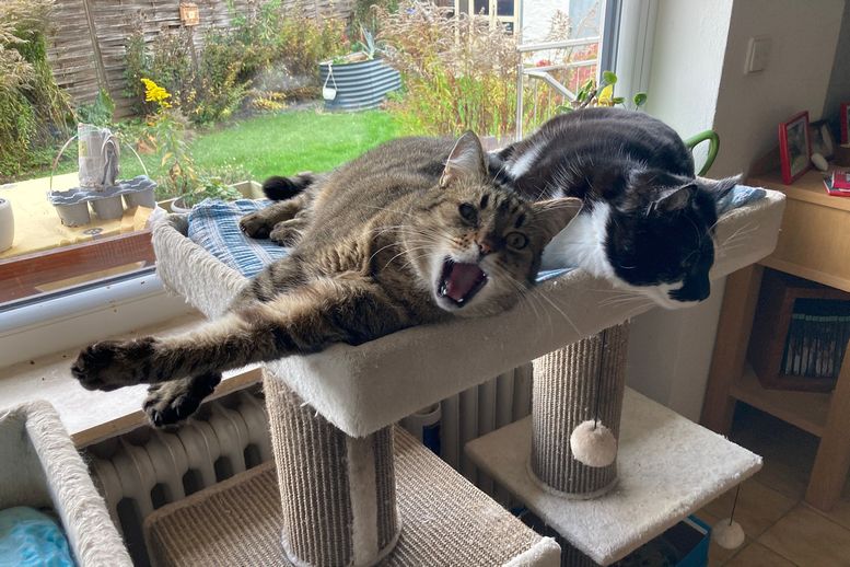 Miau, wie die Zeit vergeht. Heute (2.3.) vor 5 Jahren sind wir in unser neues Zuhause gezogen, und wir wollten euch wirklich mal sagen, was für tolle Mensch…eh..Persona..eh eine tolle Familie ihr uns gefunden habt. Wir können es uns hier gut gehen lassen und werden von Schnurrhaar bis Schwanzspitze verwöhnt. Wir halten alle Pfoten gedrückt, das die jetzigen Bewohner auch so viel Glück haben wie wir.