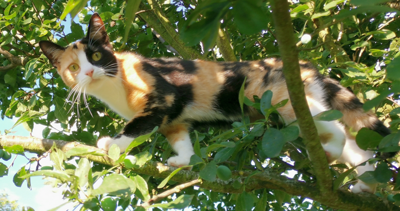 Mal bin ich eine Baumkatze, mal verstecke ich mich zwischen den Blumen und überall dort, wo es schön grün ist.