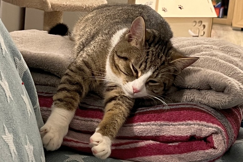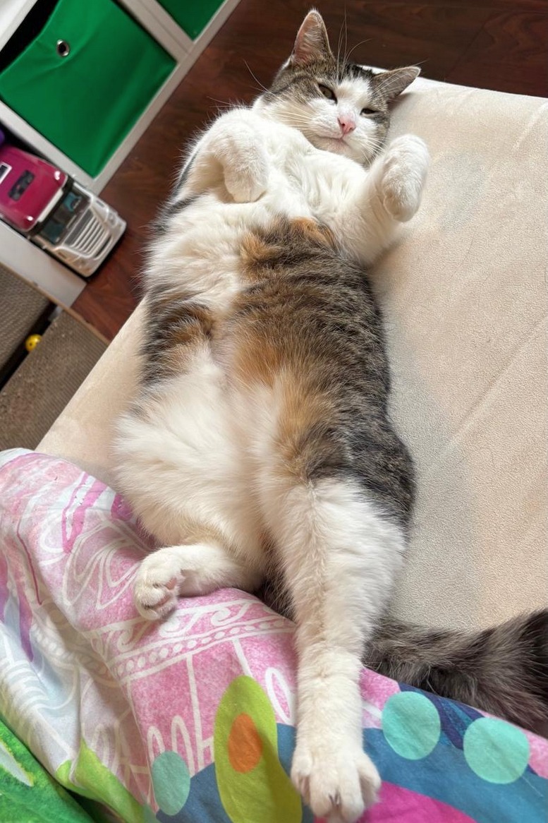 Wir hätten anfangs nicht gedacht, dass Mariah, welche wir liebevoll Mary nennen, sich nach dem 18. Tag schon streicheln lässt (eine sehr freundliche Mitarbeiterin gab uns den Tipp, dass Katzen besser auf Namen hören, welche mit dem ,,I-Ton” enden). Mary hat sich sogar als eine verschmuste und gerne schnurrende Katzendame, trotz ihrem introvertierten Charakter, entpuppt. Anfänglich bekamen wir sie nur selten zu Gesicht und richtig gefressen hat sie erst Sonntags nach ihrer Abholung… wir waren sogar kurz davor Kontakt zu Ihnen aufzunehmen! Mit Leberwurstcreme und Lachsöl schien dies allerdings nicht mehr nötig.