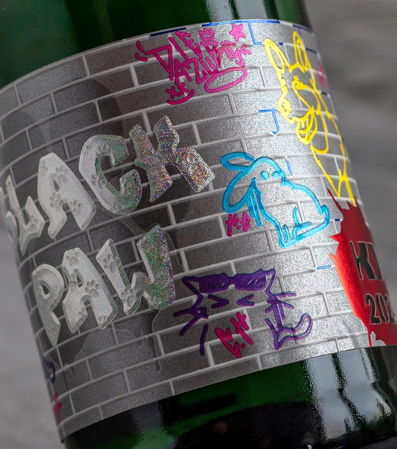 Gestalterisch ist „Black Paw“ ein echter Hingucker: Im modernen Graffiti-Stil zeigt das Etikett des alkoholfreien Sekts eine Wand mit verschiedenen Tieren, die von den Auszubildenden ausgewählt wurden. Jedes Motiv wurde durch Relieflack hervorgehoben. Der Schriftzug „Black Paw“ sticht dank einer mehrstufigen 3D-Heißfolienreliefprägung besonders ins Auge, ergänzt durch Pfotendetails, die zusätzliche Tiefe schaffen. Eine großflächige Pfote als Debossing sowie eine individuelle Stanzform mit Deckweiß-Elementen runden das Design haptisch wie visuell ab.