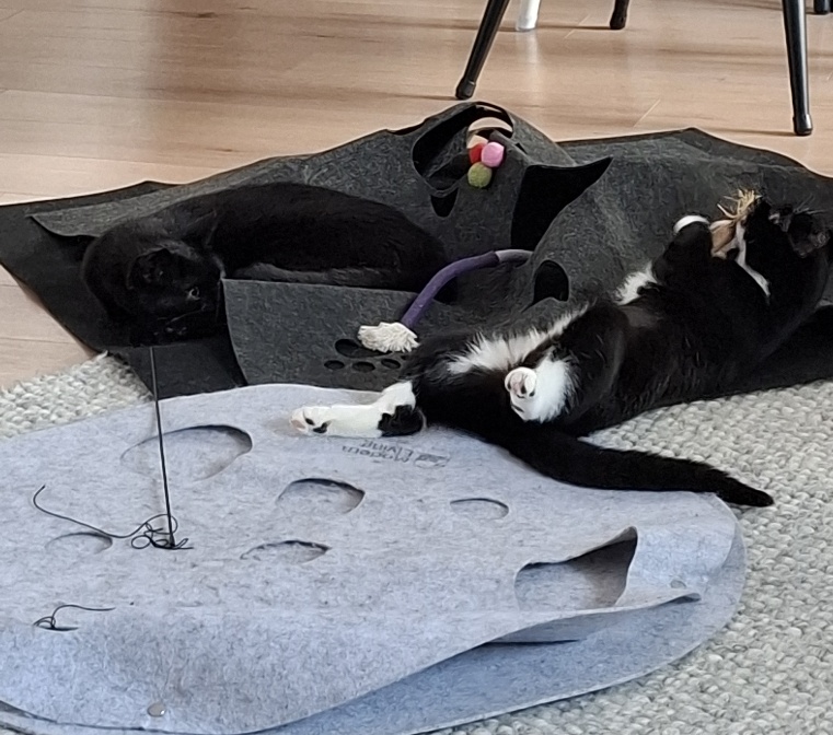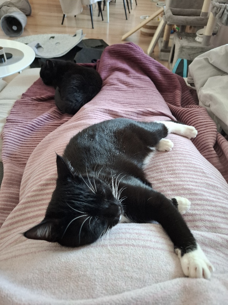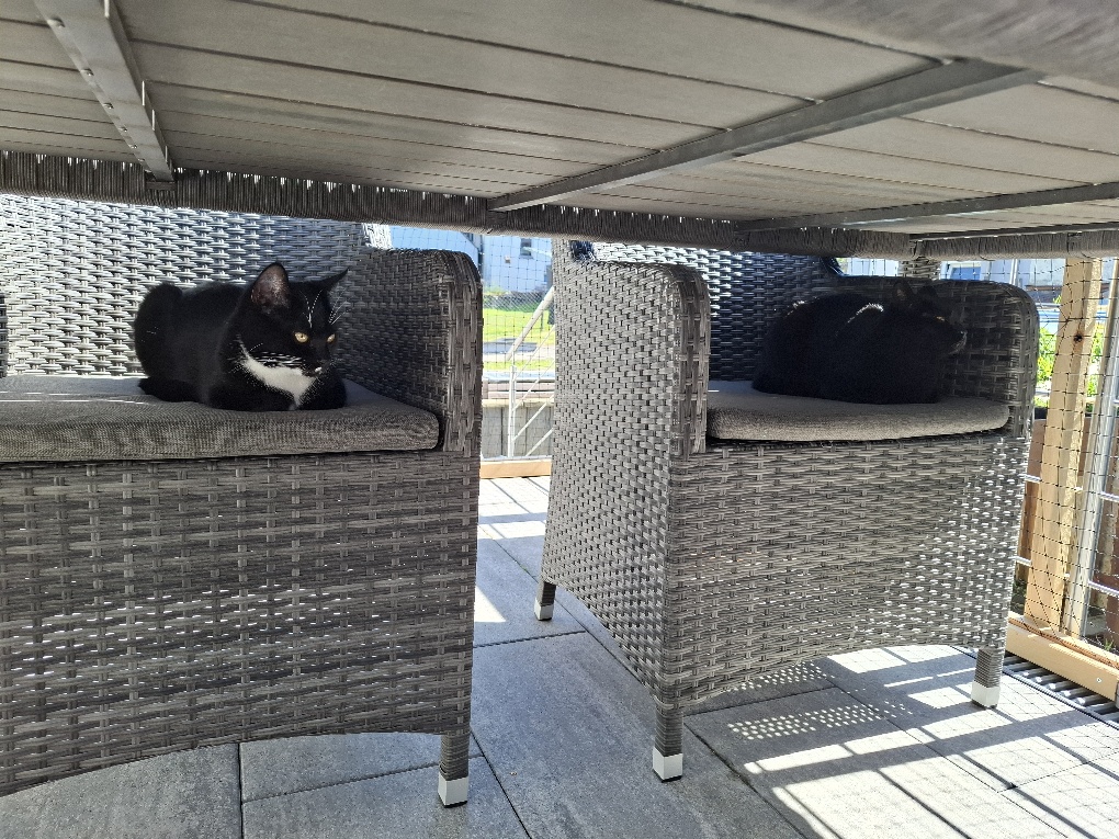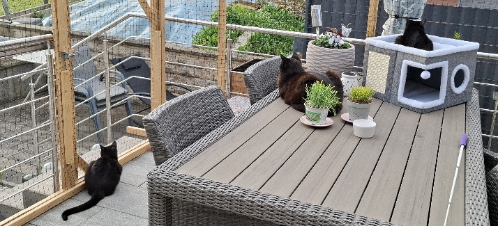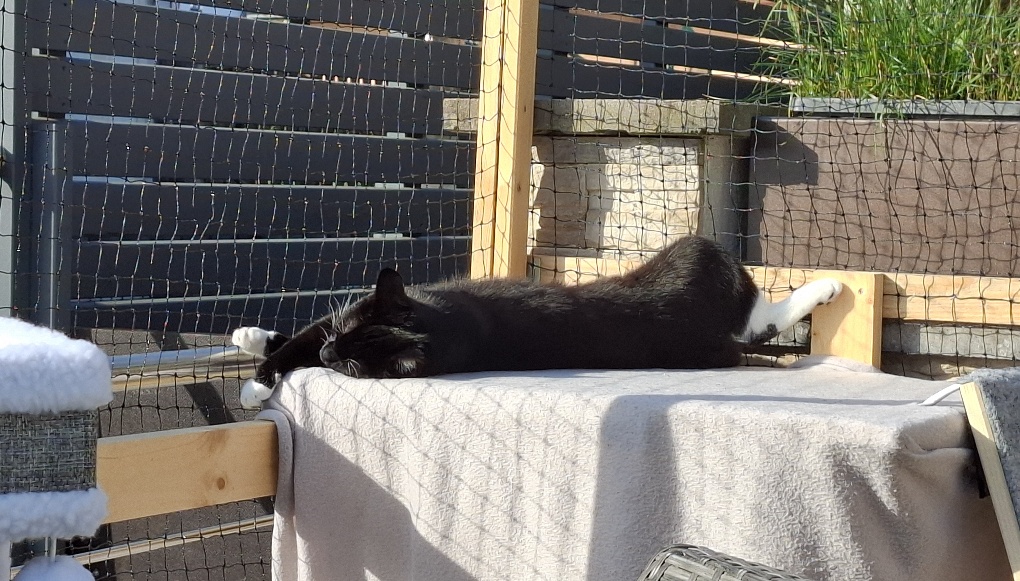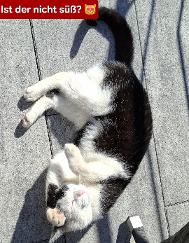 Ansonsten geht es mir aber gut. Ich spiele, liege gerne in der Sonne und schmusen ist auch was Tolles. Die Dosenöffner sagen, dass wir in 2-3 Monaten nicht nur auf die gesicherte Terrasse dürfen, sondern auch in den Garten. Da freuen wir uns drauf. Vor allem, weil da so viel los ist. Mücken, Hummeln, Gras, Mäuse und andere Miezen 😻