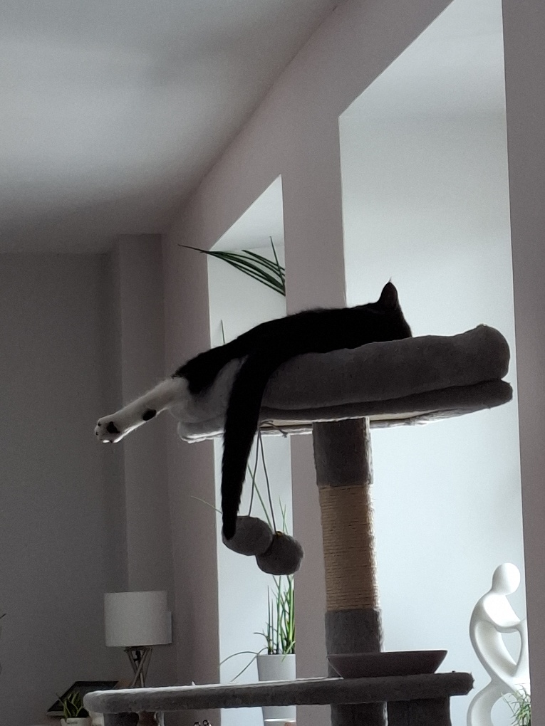 Seit ca. einem Monat hat Striezel sich wohl endgültig bei uns eingelebt. Er liegt auf der Couch, den Stühlen oder sogar auf dem Tisch 🫢 und wir dürfen ihn streicheln. Wir sind sehr froh, dass wir  das Projekt Striezel gewagt haben.