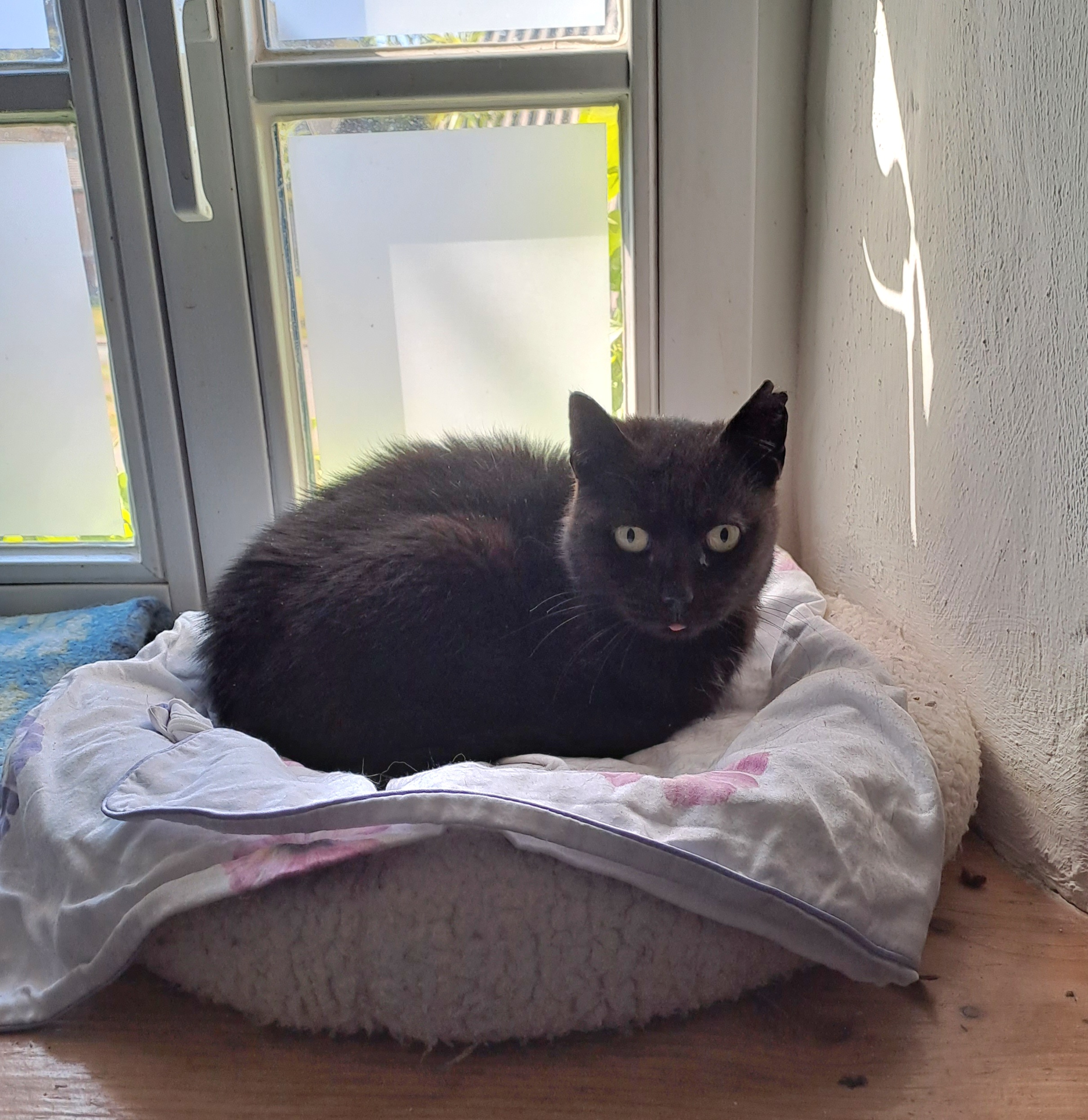 Anfänglich war ich noch sehr vorsichtig, und habe mich erst einmal im Kleiderschrank versteckt. Dann habe ich das Sofa erobert, und inzwischen liege ich am liebsten auf der Fensterbank und lasse mich von der Sonne bescheinen, und wenn ich will, auch streicheln.