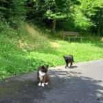 oder vor mir her. Das können schon mal Spaziergänge durch den Wald von über 2 km werden. Kein Thema, wenn ich eine Pause mache, halten die beiden auch an und warten… und selbst wenn ich 1 Std lang auf einer Bank ein Buch lese… die beiden warten treuherzig, bis es weitergeht. Das ist echt niedlich.