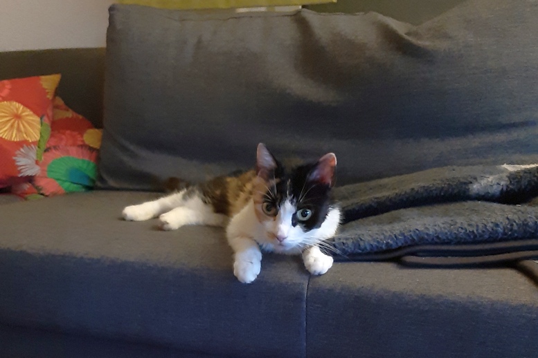 hier spricht Mathleen. Ich bin am 28. Juni in Trier bei einer sehr netten Familie eingezogen. Mit den Kindern ist immer viel los aber sie streicheln mich auch ganz liebevoll – so viel wie ich will! Ich bin sehr verschmust, worüber sich alle freuen. Ich fühle mich sehr wohl in meinem neuen zu Hause. Am besten gefällt es mir auf dem Sofa.