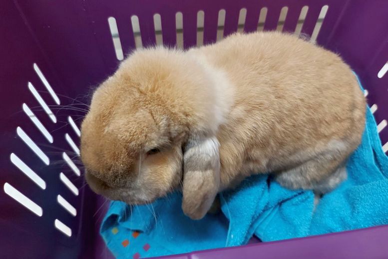 Karotte ist eben abgegeben worden, weil die Besitzerin eine Allergie hat. Sein Partnertier ist verstorben und er lebte die letzte Zeit alleine in einem Außengehege. Er ist bereits kastriert und im Juni 2020 geboren. Karotte geht heute zur Eingangsuntersuchung.