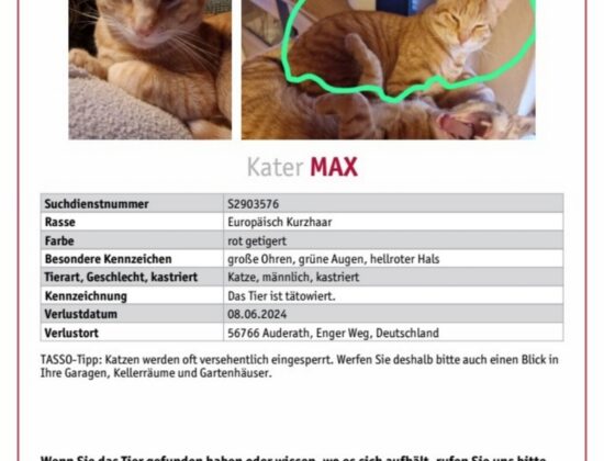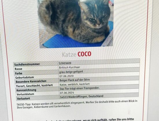 Eben ist Dori von einem Mann aus Trier abgeholt worden. Dori ist dort Einzel-Wohnungskatze.