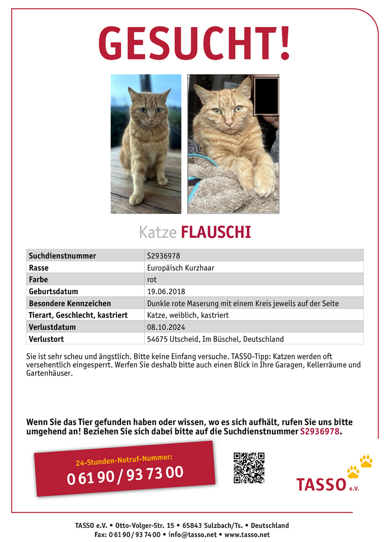 Dies ist wieder ein gutes Beispiel dafür, dass Chippen allein nicht hilft. Ohne Registrierung können wir leider mit dem Chip nicht viel anfangen und nicht nachvollziehen, wem diese Katze gehört. Also, sollte ihre Katze gechippt oder tätowiert sein (wenn nicht bitte nachholen), dann melden Sie die Katze bitte bei Tasso oder Findefix an. Dies ist vollkommen kostenlos und hat nur Vorteile für Sie. Jeder Tierarzt oder Tierschutzverein und jedes Tierheim meldet gekennzeichnete Fundkatzen direkt bei Tasso oder Findefix und Sie wissen innerhalb kürzester Zeit, dass Ihr Tier gefunden wurde. Selbst wenn Sie Ihr Tier noch gar nicht vermissen, sollte es registriert sein. Sollte dem Tier zum Beispiel was passieren oder es steigt in ein Auto ein oder ähnliches, kann es sein, dass es schon bei uns, Tierarzt, etc. abgegeben wird, Sie es aber noch gar nicht vermissen. Auch Wohnungskatzen sollten unbedingt gekennzeichnet und registriert werden, gerade wenn diese es doch schaffen, aus der Wohnung auszubrechen, kennt sie in der Nachbarschaft niemand. Also tun Sie bitte sich selbst und Ihrem Tier den Gefallen, es zu kennzeichnen (Chip oder Tätoo) und zu registrieren.