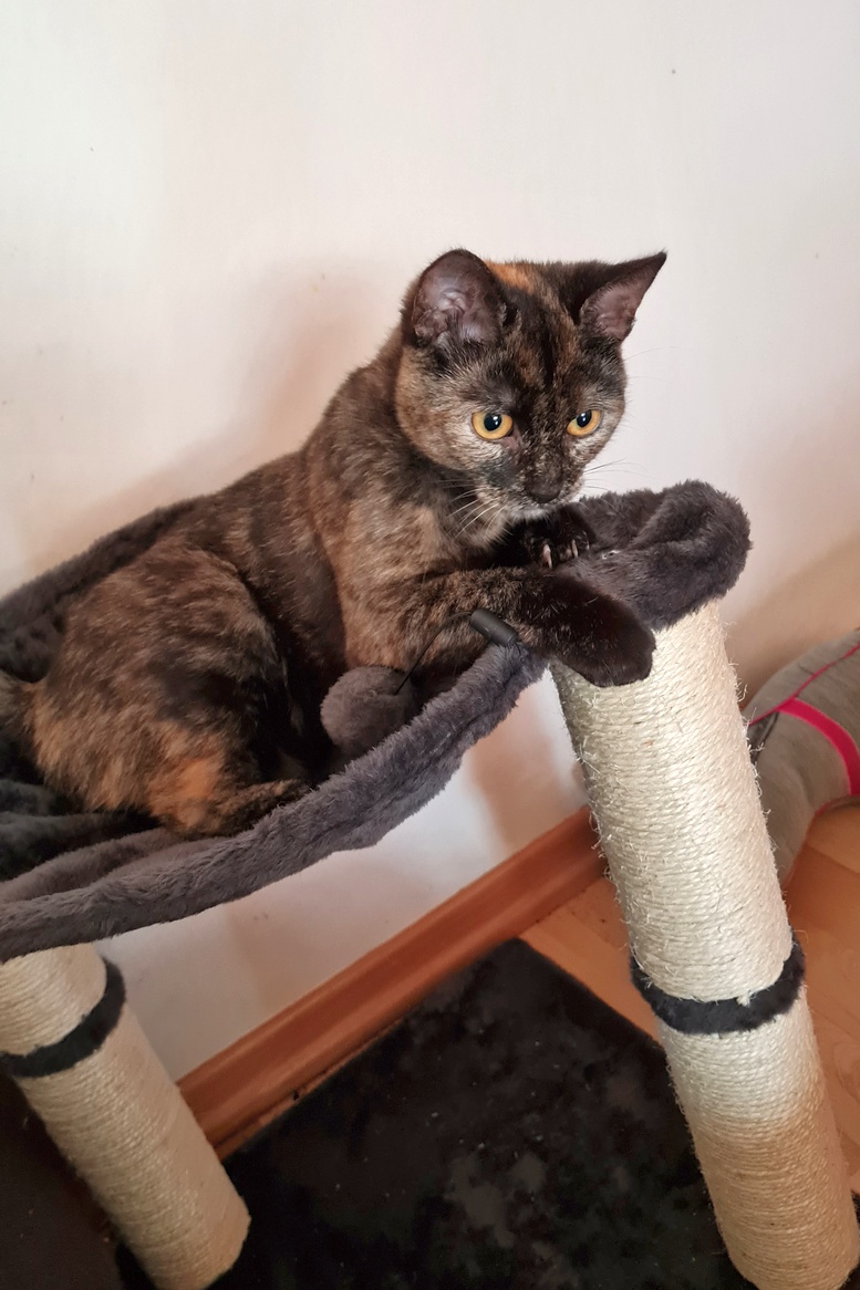 Mittlerweile geht sie tagsüber auch raus, zum Trinken, Fressen oder für ihr Geschäft kommt sie rein und geht aufs Katzenklo, dann ist sie wieder unterwegs.