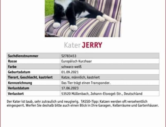 ich darf voller Freude mitteilen, dass unser Kater wieder zuhause ist – etwas abgemagert, aber gesund!