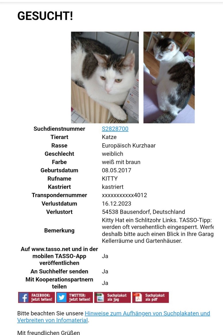 Katze vermisst 2!