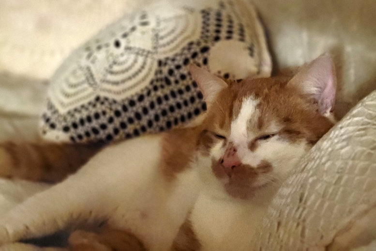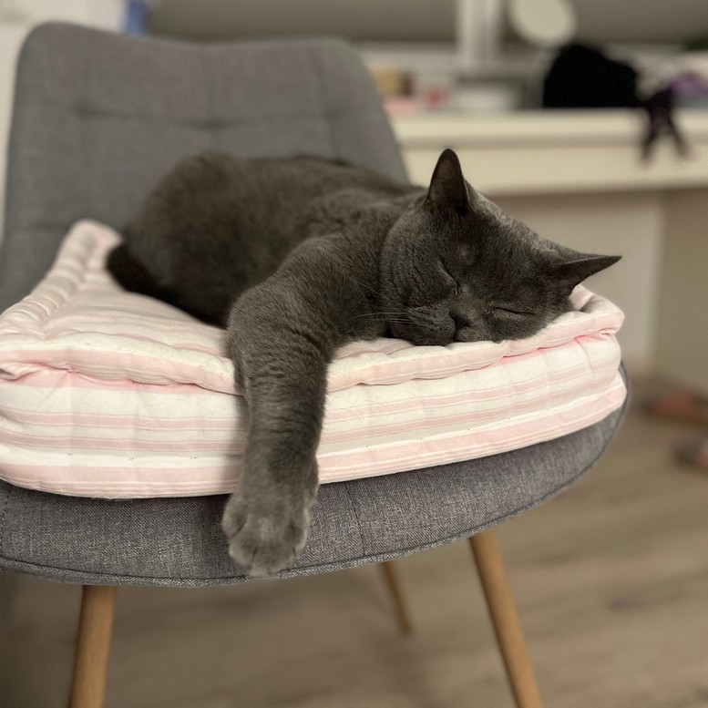 Er hat sich sehr gut eingelebt. Er ist ein sehr süßer Kater, der einfach nur glücklich ist, ein Zuhause gefunden zu haben. Jackson folgt uns auf Schritt und Tritt durch die Wohnung und schläft sogar jede Nacht brav auf seinem Stühlchen neben unserem Bett. Typisch für eine britisch Kurzhaar ist er sehr unkompliziert und unaufdringlich. Wenn er gestreichelt werden will, fordert er sich seine Kuscheleinheiten gerne auch mal ein. Jedoch tendiert er leicht übermütig zu werden, was das Ausreizen von Grenzen angeht. Wie ein verwöhntes Einzelkind eben.