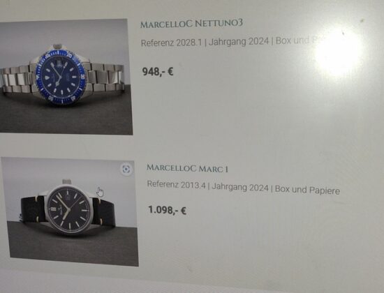 Sie dachte an eine dieser beiden Uhren: MarcelloC Nettuno3 oder Marc I (siehe Bild).