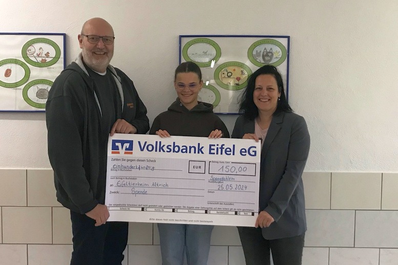 Am Samstag Vormittag kamen Vertreter der Reitschule Sonnenhof / Spangdahlem zu uns ins Tierheim und überbrachten uns die Spende in Höhe von 150,- Euro. Das Geld stammt aus einer Verlosung während eines Festes und wir waren einer der begünstigen Vereine.