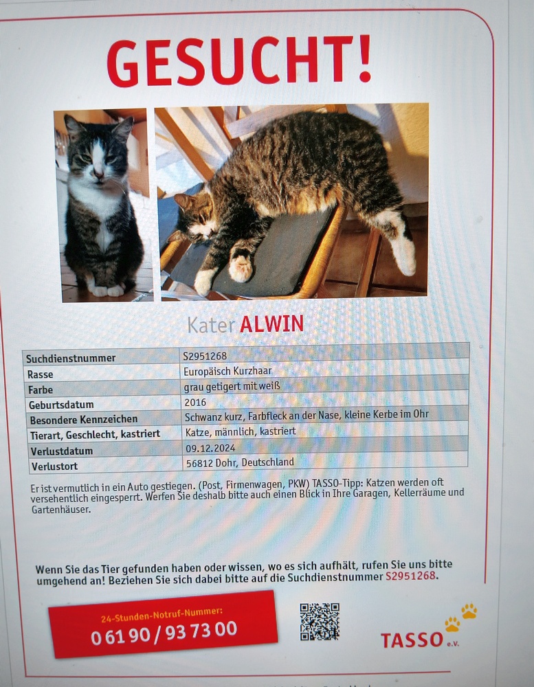 Eigentlich sollte heute noch eine verschnupfte Fundkatze über den Förderverein kommen, aber die Leute halten sie über den Jahreswechsel und versuchen noch, den Besitzer ausfindig zu machen.