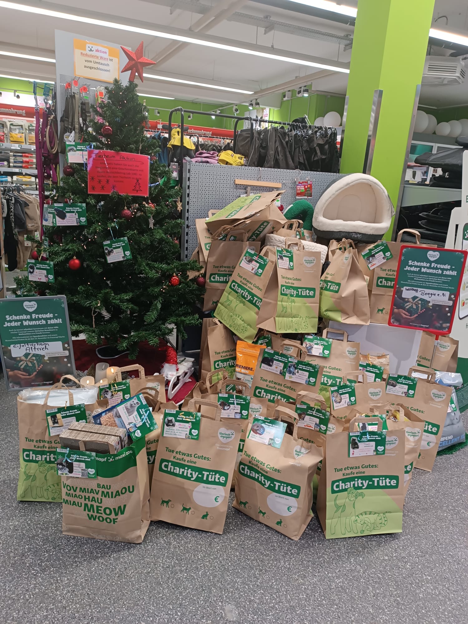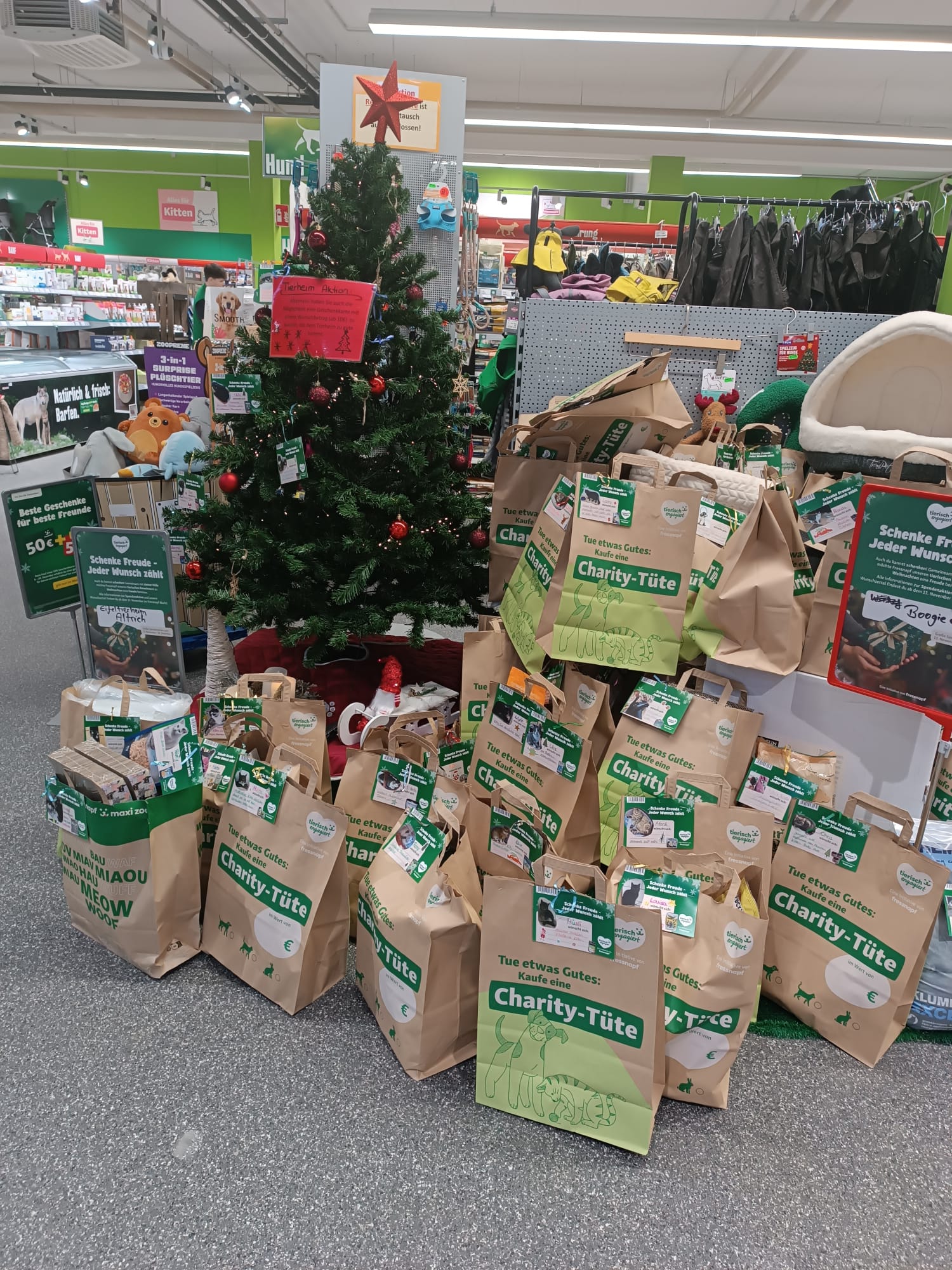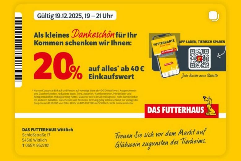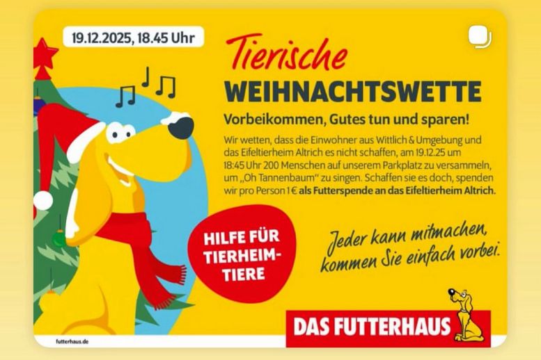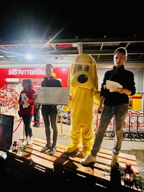 Erinnert euch an die Wette des Futterhauses, bei der 200 Menschen gleichzeitig auf dem Parkplatz zusammen Oh, Tannenbaum singen sollten? Dank eurer großartigen Unterstützung haben wir diese Wette selbstverständlich für uns entscheiden können, aber das wisst ihr sicherlich zum Großteil bereits, immerhin wart ihr ein Teil des Ganzen. An alle, die leider nicht dabei sein konnten: eigentlich ging es dabei um eine Spende von 200€ bei Gewinn der Wette. Die Inhaber des Futterhauses waren aber so lieb, die Summe auf 1000€ zu erhöhen. Ein ganz großes Dankeschön dafür und natürlich auch an alle, die mit uns gesungen haben.