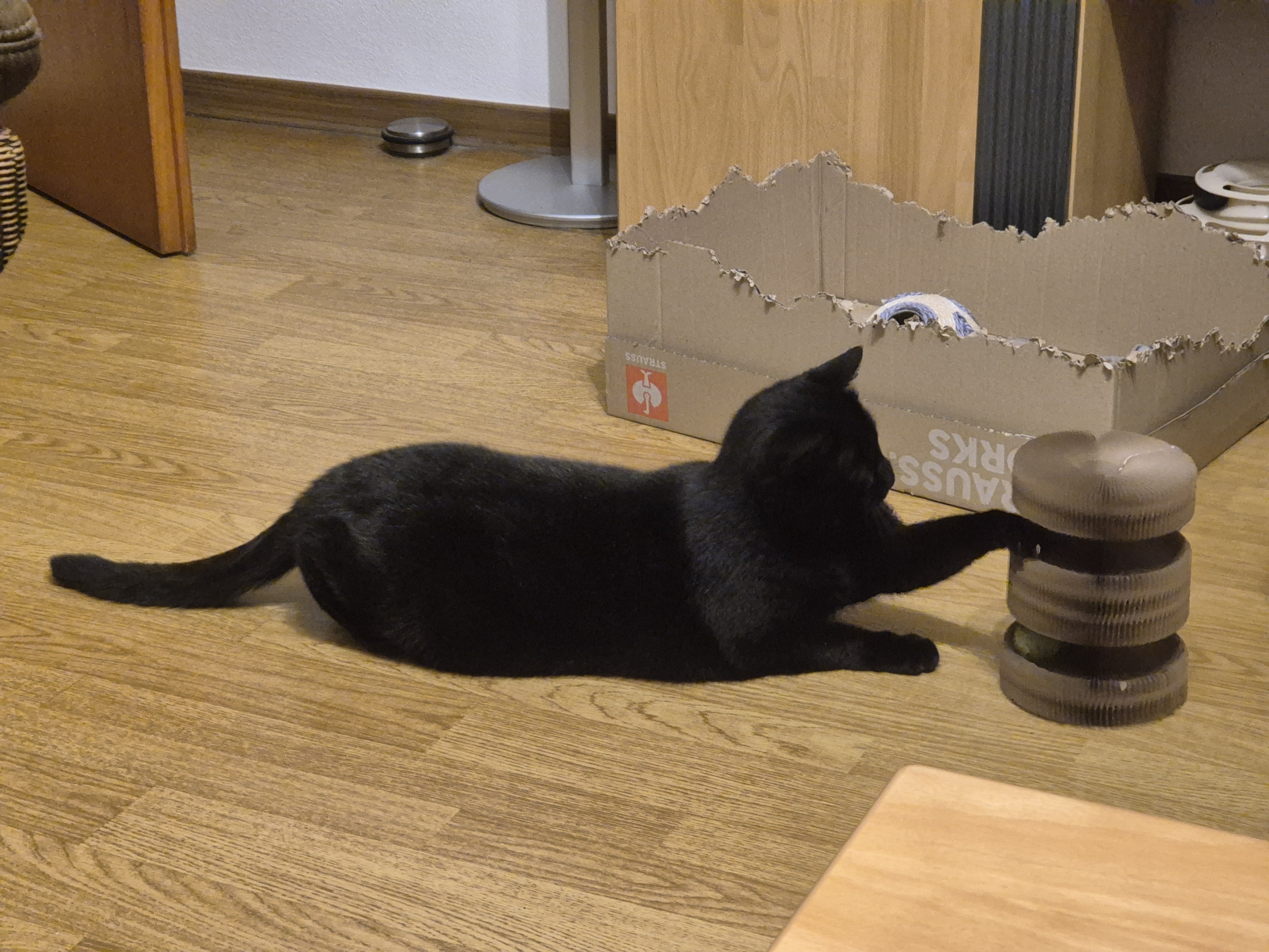 Anfang August diesen Jahres hat uns eine nette Frau draußen gefunden und ins Eifeltierheim nach Altrich gebracht. Mit uns meine ich, meine Kinder, ihren vermeintlichen Vater und natürlich meine Wenigkeit. Ob er wirklich der richtige Vater ist, verrate ich niemanden. In der Quarantäne fand ich es eigentlich gar nicht so schlecht, immerhin war es für meine Babys und mich immer schon kuschelig warm eingerichtet. Umso größer meine Kinder wurden umso genervter war ich dann aber doch. Nach unserer wochenlangen Pilzbehandlung wurde ich kastriert und ein paar Tage später hat mich eine der Mädels abends einfach in eine Transportkiste gepackt und zu sich mitgenommen. In meinem neuen Zuhause bin ich total glücklich! Mein Alltag besteht jetzt nicht mehr aus Mama-Sein, sondern aus kuscheln und ganz viel spielen. Am liebsten spiele ich ,,Fernsehen“ egal was dort läuft, ich möchte alles fangen und springe und schlage gegen den Fernseher. Meine Menschen machen aber leider ab und zu den Fernseher aus weil sie behaupten, ich würde ihn sonst noch kaputt machen.. naja jedenfalls habe ich hier aber auch tolle neue Freunde gefunden. Nelia, meine beste Freundin, kommt aus Kroatien und wurde über den Förderverein vermittelt. Wir beide können richtig schnell flitzen und machen gerne Wettrennen und sie zeigt mir wie man Kilian und Maurice (meine Flauschigen Mitbewohner) am allerbesten ärgern kann! Der letzte Vierbeiner der mit mir hier wohnt ist Lucifer. Auch er kommt aus dem Tierheim. Er ist ein paar Monate vor mir hier eingezogen. Ehrlich gesagt glaube ich, er hat sich in mich verschossen. Sobald er mich sieht funkeln seine Augen und er läuft mir mauzend hinterher. Aber ich mag ihn auch sehr gern. Soll ich mal was über ihn erzählen? Eigentlich darf ich das keinem erzählen also psst ok? Als er ins Tierheim kam, hieß er Lucy. Beim Doctor haben die aber festgestellt das er gar kein Mädchen ist. Lucy war ganz außer sich, das er für ein Mädchen gehalten wurde und zeigte allen wie gut er fauchen kann. Den Mädels war also klar: keine Lucy, sondern ein Lucifer!
