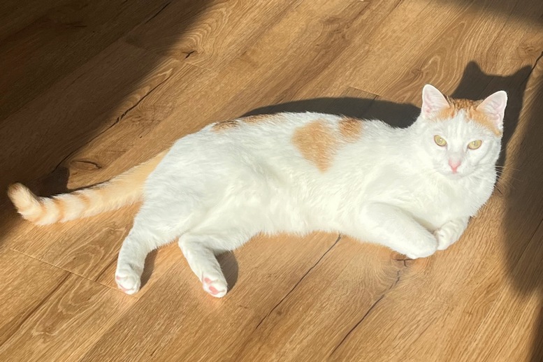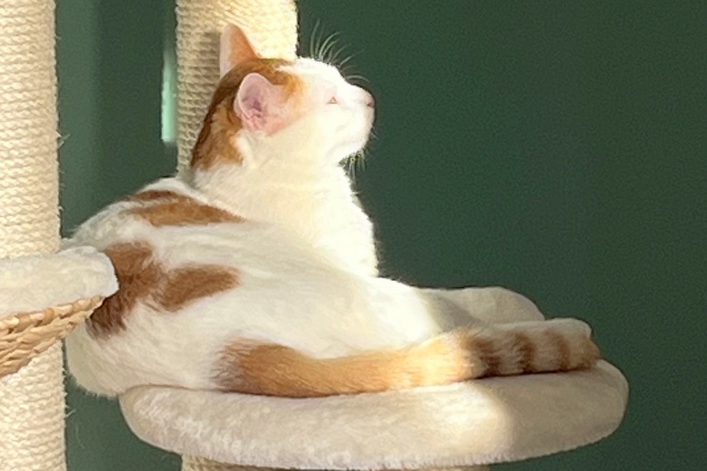 “Ich war ja nun wirklich nicht lange bei euch, aber mein letztes Baby durfte ich noch bei euch bekommen, bevor ich zu meinen damals noch vorläufigen neuen Dosenöffnern umgezogen bin. Hier zog ich meine kleine Matcha in einem eigenen Reich groß, aber ich habe mir schon immer gedacht, da hinter diesen einen Tür, da ist noch mehr. Und siehe da! Unendliche Weiten voller Kuschel- und Versteckmöglichkeiten, herrliche Ausblicke ins Grüne und sogar zwei flauschige Untertanen fand ich vor. Da wusste ich sofort: Hier bleibe ich. Meine neuen Dosenöffner hatten auch gar keine Wahl, denen habe ich mich einfach ins Herz (und in den Schoß) gekuschelt und damit war die Sache erledigt. Nachdem ich den beiden flauschigen Kater-Untertanen Marlo und Merlin, ebenfalls aus eurer Obhut, einmal gezeigt habe, was Frauenpower heißt, war ich die Matriarchin dieses Hauses. Seitdem wird hier viel gekuschelt, geschlafen und einfach das Leben genossen, das habe ich mir immerhin mit meinen gut neun Jahren mehr als verdient.”