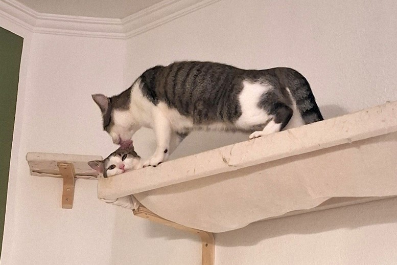 Nidorina hat sich bei uns richtig gut eingelebt. Vor allem mit unserem Kater hat sie sich angefreundet. Die beiden spielen viel miteinander, kuscheln, putzen sich gegenseitig und gehen sogar manchmal gleichzeitig auf ein Katzenklo.