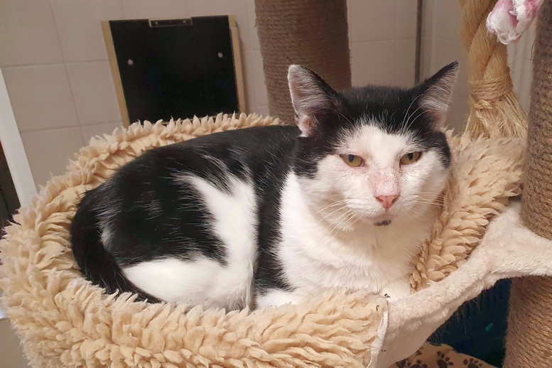 Nelio ist schon eine Weile bei uns und kam ursprünglich aus einer Fangaktion in Nerdlen. Bis auf ihn und einer weiteren Katze waren alle FIV-positiv getestet. Das hatte uns schon damals gewundert, weil er eigentlich wie ein typischer FIVi aussieht. Deshalb haben wir uns entschieden, auch ihn nochmal nachzutesten, da auch FIV bei einer frischen Infektion nicht unbedingt beim Schnelltest direkt erkannt wird. Leider hatten wir recht. Nelio ist doch FIV-positiv. Zum Glück ist er super verträglich und hat sich in der Zeit, in der er auf einem normalen Zimmer saß, nie geprügelt oder überhaupt mit den anderen gestritten. Für eine FIV-Infektion von Katze zu Katze muss es schon zu einem großen Blutkontakt kommen, dass diese überhaupt möglich wäre. Da Nelio und alle Katzen, mit denen er Kontakt hatte, natürlich auch kastriert sind, ist es unmöglich, dass er jemanden angesteckt hat. Jetzt sitzt er auf einem unserer FIV-Zimmer.