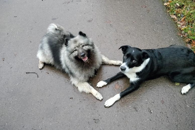 Leckerlis, Spielzeug und Buddellöcher werden nicht mit anderen Artgenossen geteilt. Im Dunkeln ist er sehr auf Distanz mit anderen und passt eher auf Frauchen auf.